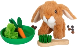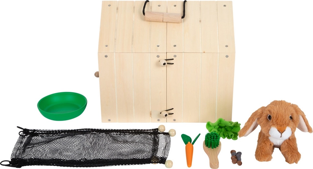 Incluye un conejo de peluche y prácticos accesorios: escobilla, cuenco, zanahoria de madera, hoja de lechuga y “bolitas” de fieltro para escenas de cuidado auténticas. El set es una alternativa ideal para niños que aún no pueden tener una mascota real y les ayuda a desarrollar habilidades sociales y emocionales.