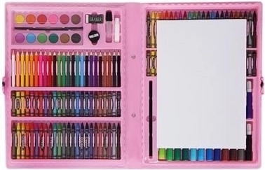 Amplia selección: 24 lápices de colores, 24 rotuladores, 48 ceras, 48 pasteles al óleo, 12 colores de acuarela y prácticos accesorios. Todo para dibujar, colorear y pintar con acuarela.