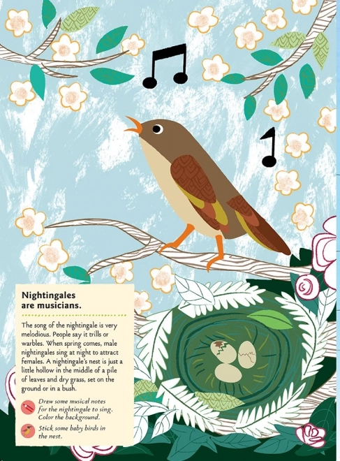 Descubre el fascinante mundo de las aves con una actividad creativa para niños a partir de 5 años. Este bellamente ilustrado libro de Olivia Cosneau ofrece 104 pegatinas, 25 actividades divertidas y un breve cuestionario. Los niños conocerán de forma lúdica la diversidad de especies: desde ruiseñores y golondrinas hasta colibríes, pelícanos y pingüinos. El libro está en inglés y cumple con las normas europeas de seguridad vigentes.