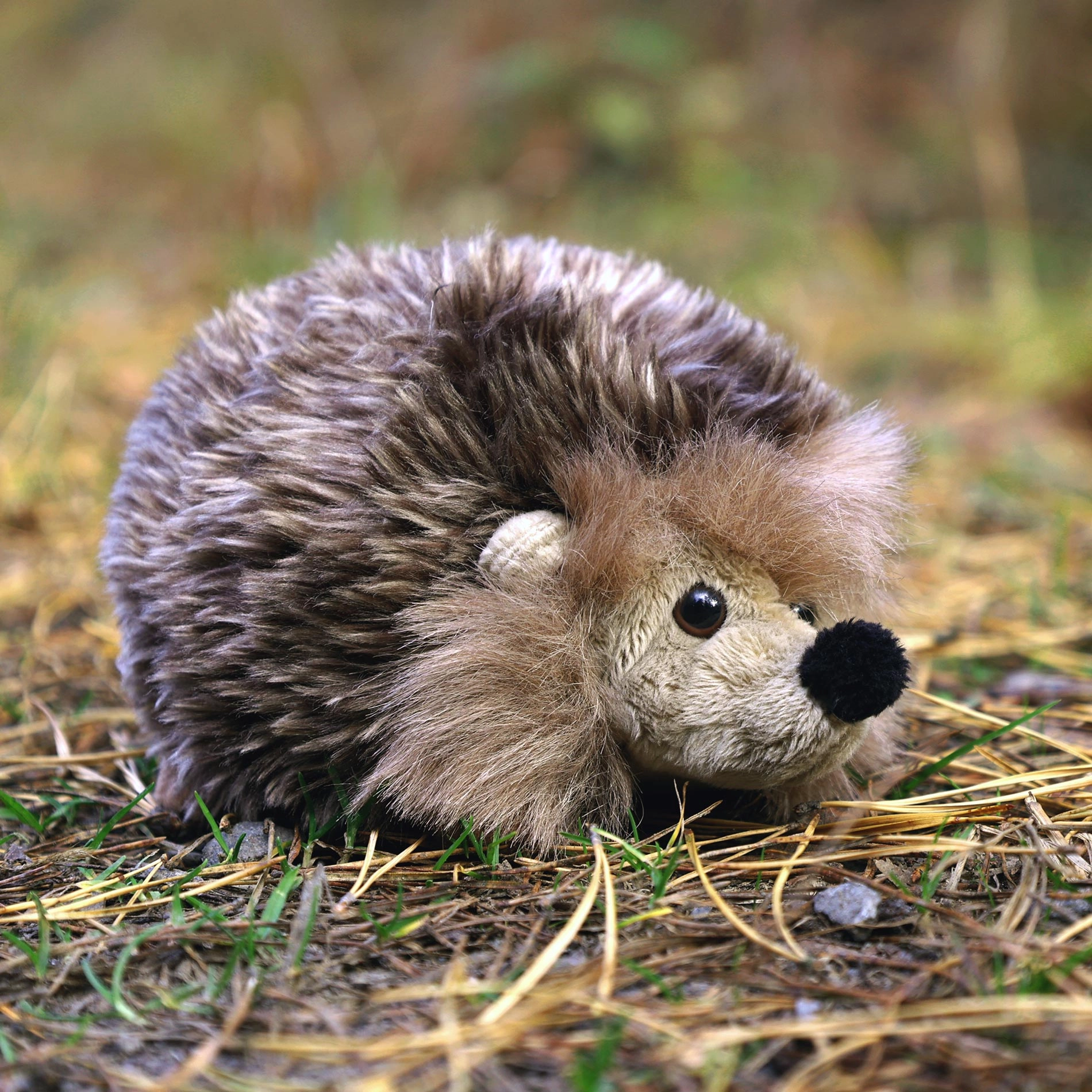 El detallado acabado con ojos plásticos y un hocico suave convierte al erizo en un fiel amigo de peluche.