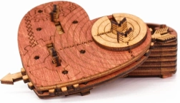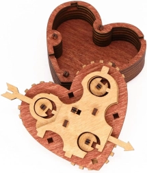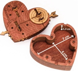 Este elegante corazón con engranajes y grabados oculta un ingenioso mecanismo de código. Tras ajustar correctamente las tres palabras, solo hay que tirar de la flecha y la tapa se abre. Puedes usar el corazón como envoltorio seguro para un pequeño detalle, un mensaje personal o como rompecabezas de diseño para exhibir.