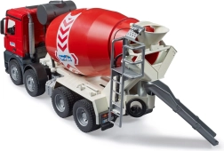El vehículo está equipado con un tambor giratorio y espejos abatibles, lo que simula las funciones reales de un camión hormigonera.