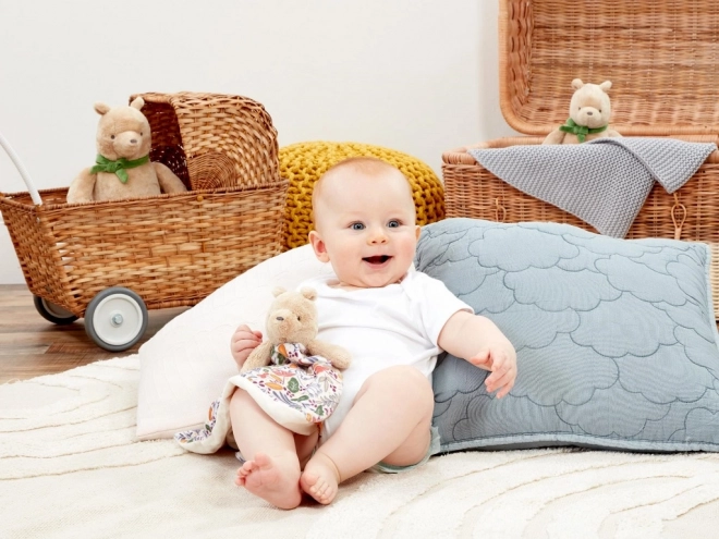 El dou dou OSITO WINNIE es un compañero suave para los más pequeños que calma, aporta sensación de seguridad y hace más agradable cada momento de ir a dormir. Su peluche mullido y la delicada tela estampada invitan al tacto y ayudan a desarrollar los sentidos del bebé. Gracias a sus dimensiones compactas, es ideal para la cuna, el cochecito y los viajes.