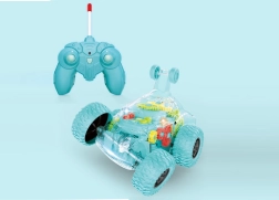 Descubre la conducción llena de adrenalina con este coche RC en color verde transparente, que permite ver sus componentes internos. Gracias al giro de 360° en parado, al movimiento fluido en todas las direcciones y a sus llamativos efectos de luz y sonido, es ideal para jugar con acción tanto en interiores como en exteriores.