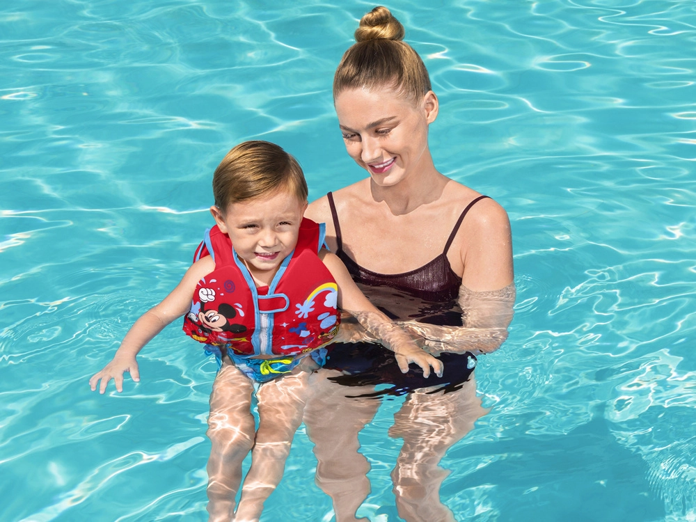 El chaleco con los personajes populares como Mickey Mouse y Pluto se convertirá en el accesorio favorito de cualquier pequeño nadador.