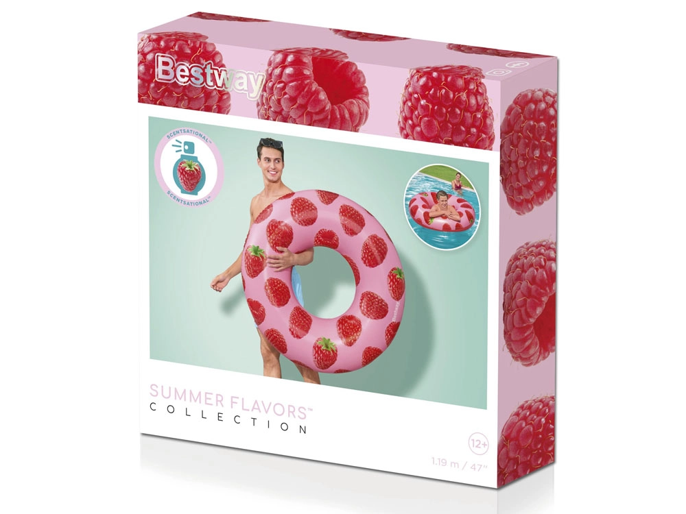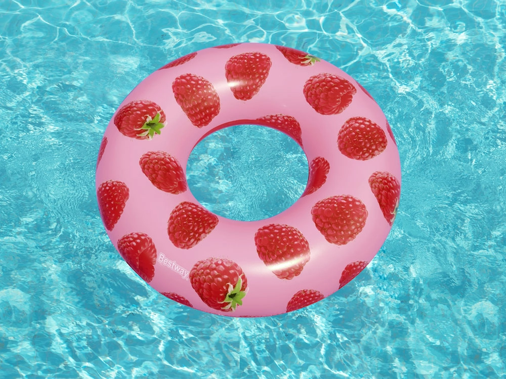 El aroma de frambuesas maduras, un diseño juguetón y el relax sobre el agua: este flotador inflable Bestway aporta un toque veraniego a cada baño. El material ligeramente perfumado deleita los sentidos sin resultar demasiado intenso, y el estampado de frambuesa conquista a primera vista y olfato.