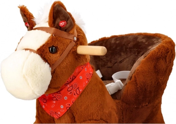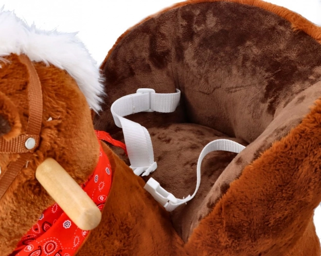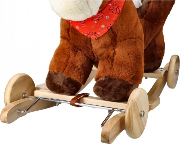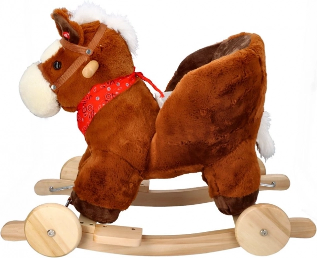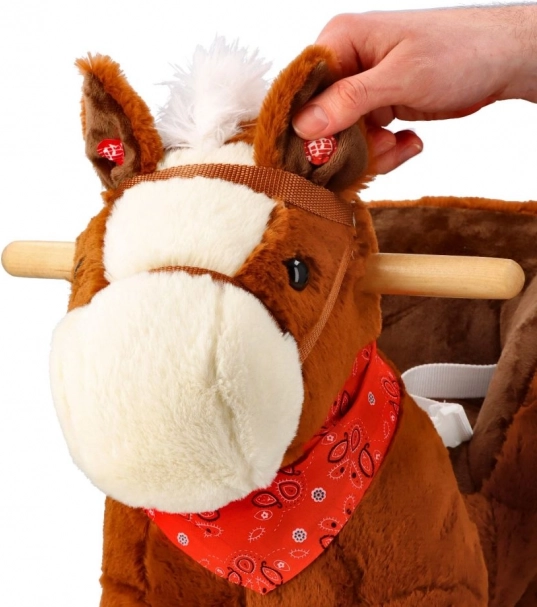 Diseñado con énfasis en la seguridad y el confort, dispone de un asiento acolchado con una profundidad de aproximadamente 20 x 14 cm, que permite sentarse cómodamente mientras se mece. Adornado con crin blanca y un pañuelo rojo, este caballito aporta no solo diversión, sino también estilo.