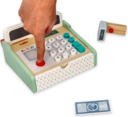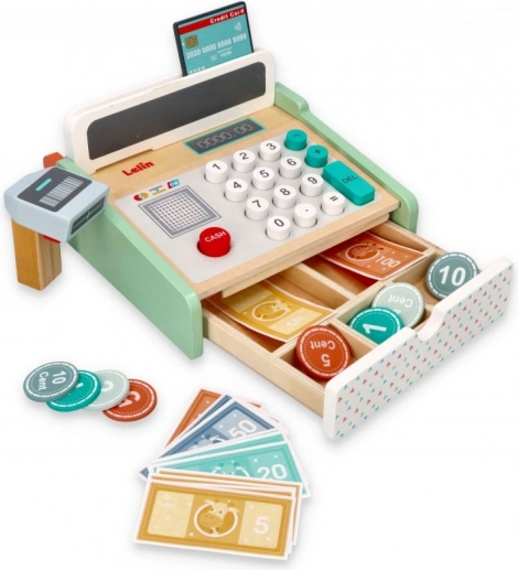 La caja registradora de madera en tonos pastel es el compañero ideal para que tus hijos jueguen a las tiendas. Este juguete está diseñado para simular experiencias reales en el comercio, ayudando a desarrollar habilidades sociales y cognitivas.