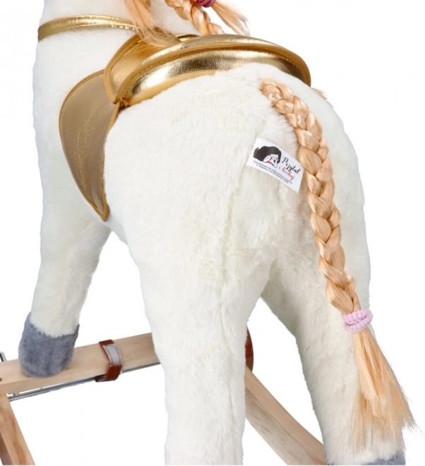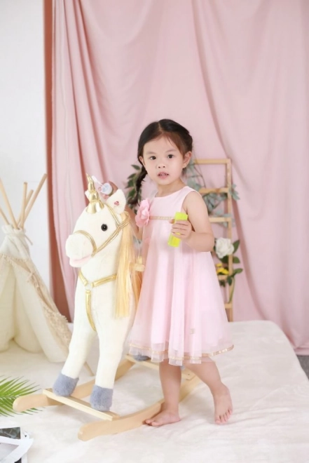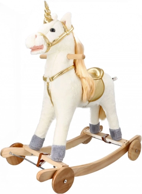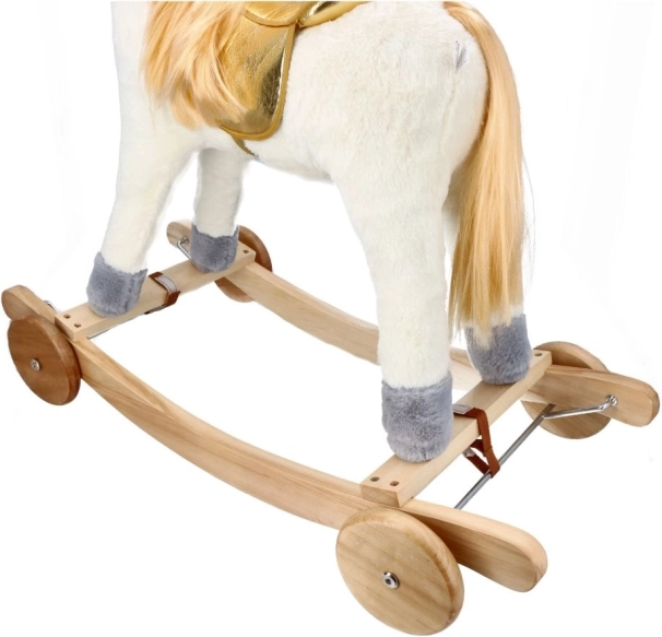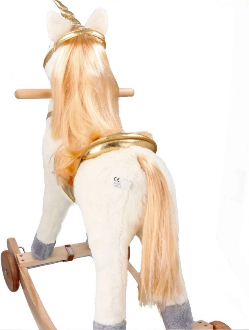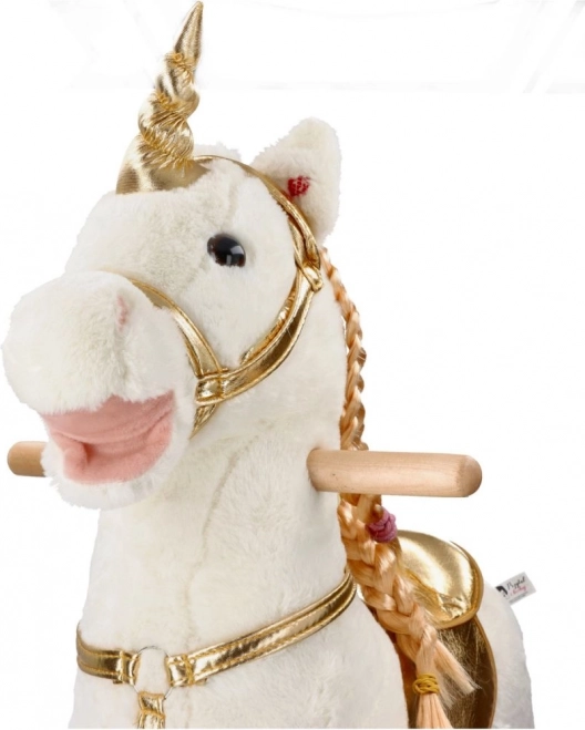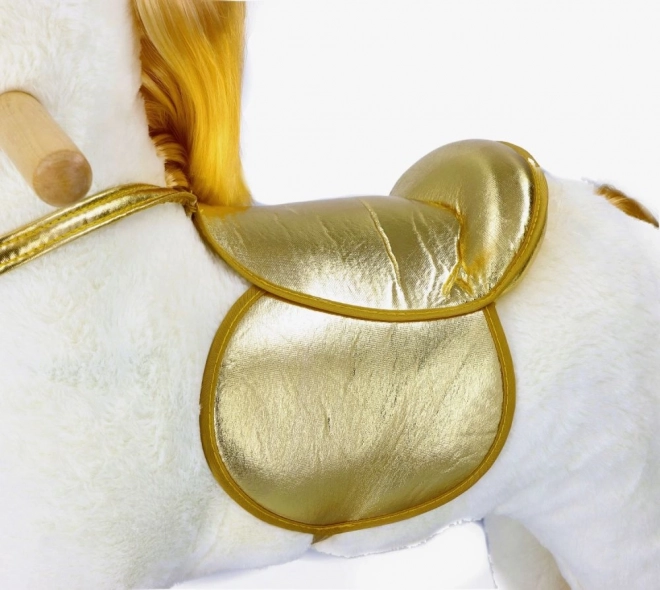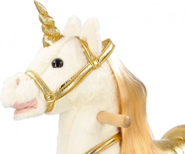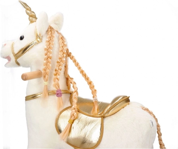 Descubre la emoción de montar en este hermoso unicornio dorado. Con su felpa suave y agradable, ofrece experiencias cómodas y divertidas para tus hijos. La estructura de madera estable y los elegantes detalles dorados aportan una atmósfera mágica a cada juego.