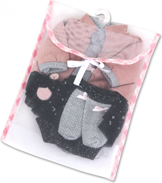 Aporta un nuevo estilo a tus muñecas con este precioso conjunto de ropa para muñeca Llorens. Este set de 4 piezas incluye una bonita goma con lazo diseñada para muñecas de 35 cm. Este completo detallado fomenta el juego creativo y a la vez aporta elegancia. Hecho a mano en España, cada pieza es única. El paquete incluye una percha de plástico para un almacenamiento práctico.