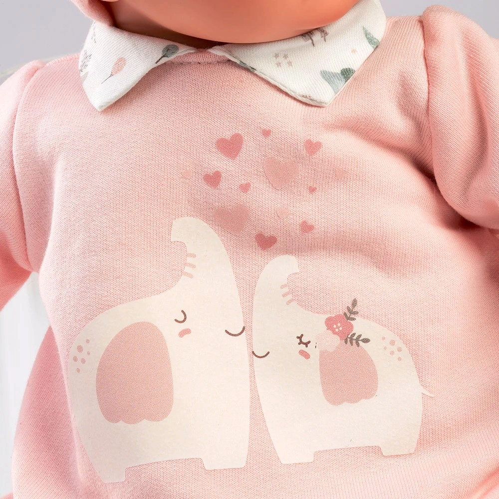La adorable bebé Joelle de la marca Llorens destaca por su alta calidad y detalles realistas. Tiene barriguita blanda para un abrazo agradable, manitas, piecitos y cabecita de vinilo con sombreado suave, pestañas y ojos brillantes. La ropita está confeccionada con algodón orgánico, lana y materiales reciclados. Un regalo ideal para niños con función educativa y de juego.