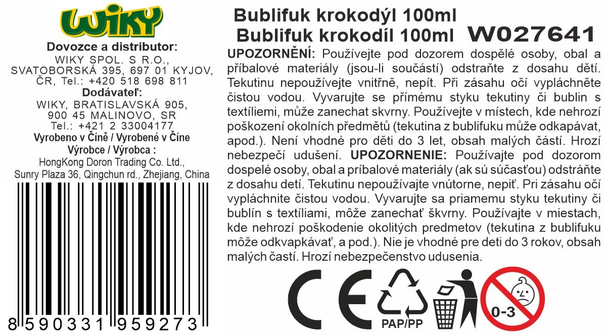 Descubre una diversión sencilla y segura para los niños con el pompero cocodrilo. La gran carga de 100 ml garantiza mucho tiempo soplando sin recargas frecuentes, y el cuerpo más largo de la varilla se sujeta cómodamente incluso por manos pequeñas. Las variantes de color encantarán a cualquier pequeño amante de las burbujas.