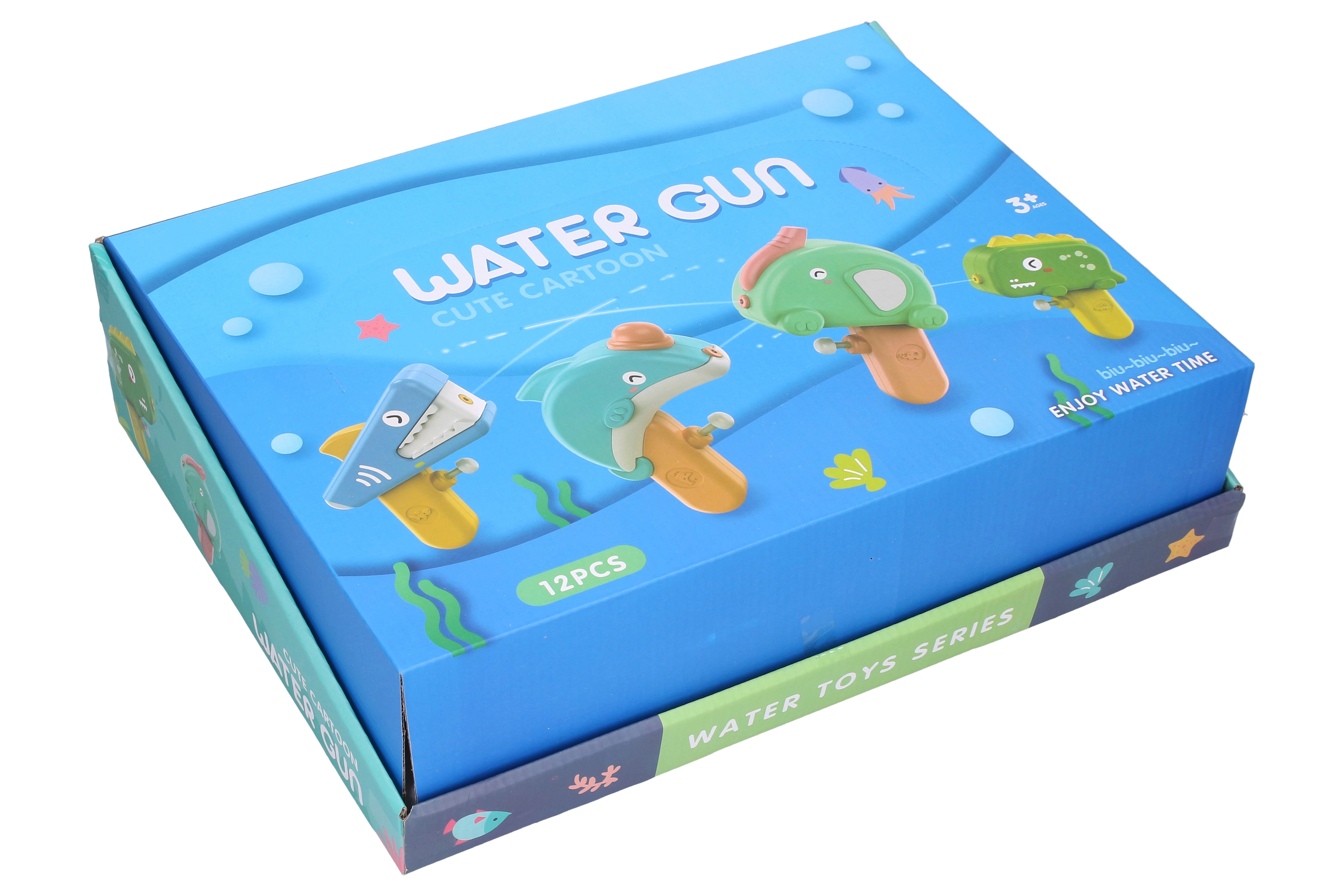 Las pistolas se llenan de agua con facilidad y disparan de forma fluida, por lo que son perfectas para jugar en la piscina, en la playa y en el jardín. El display box incluye 12 unidades, una solución práctica para fiestas infantiles y zonas de juego.