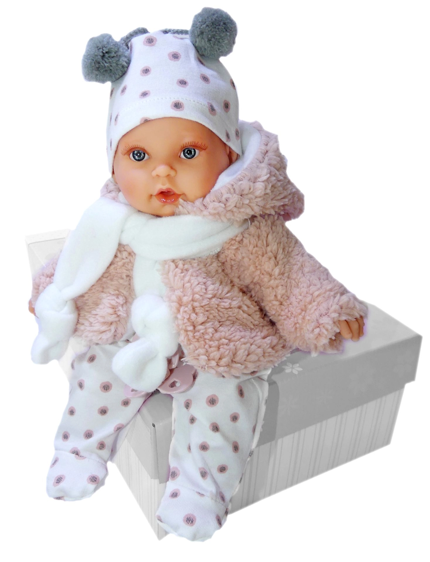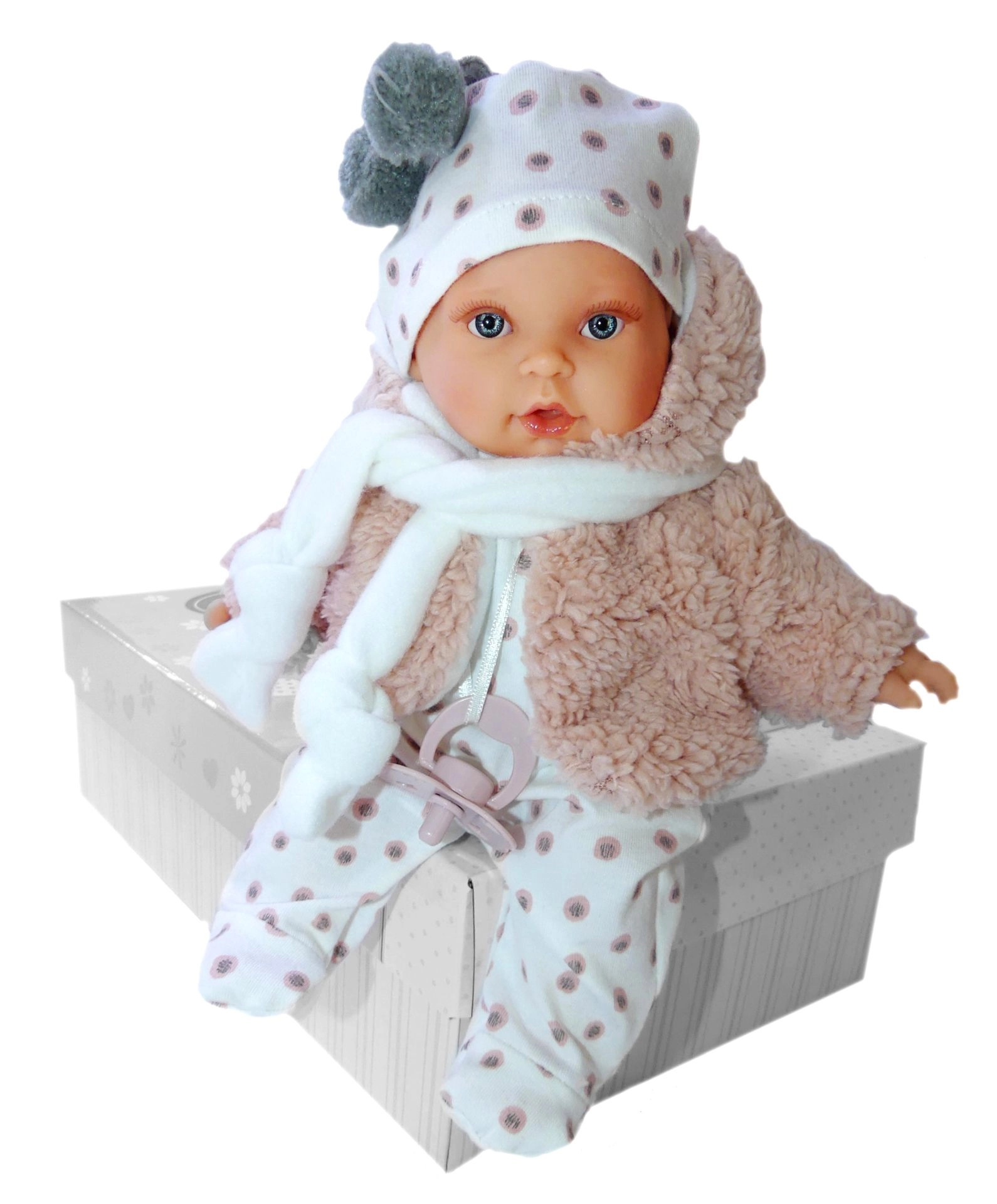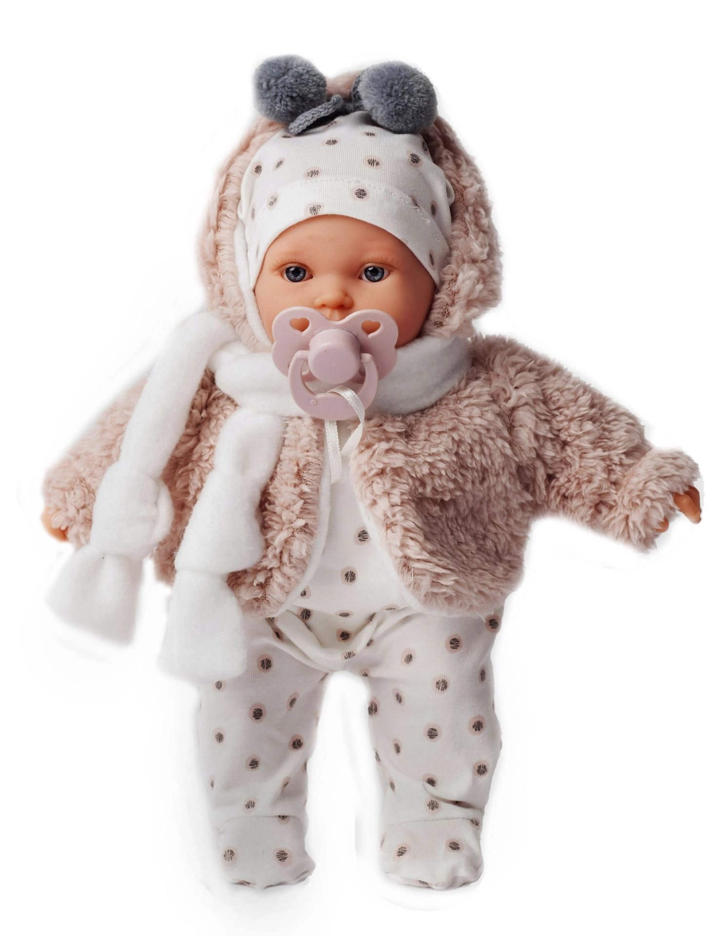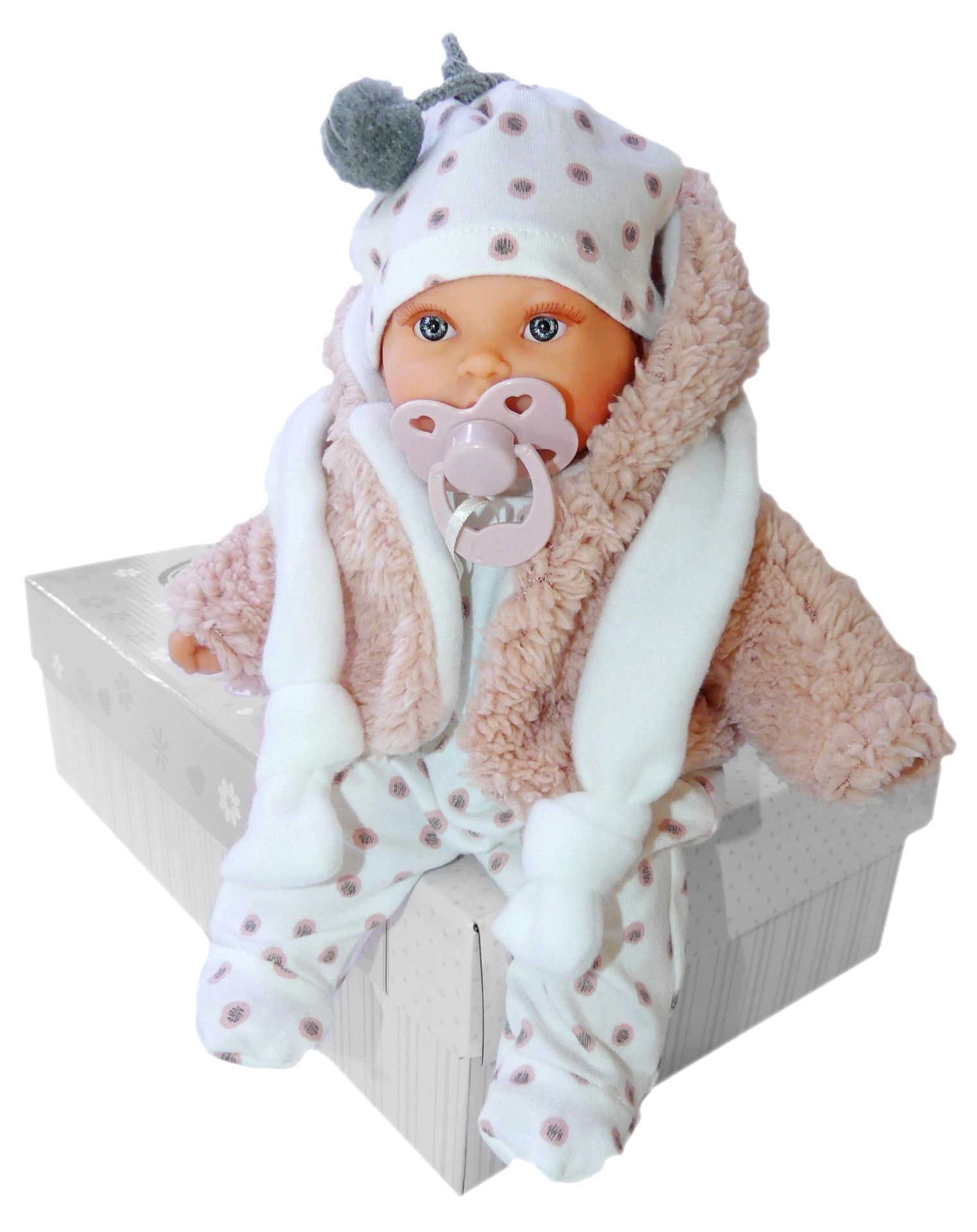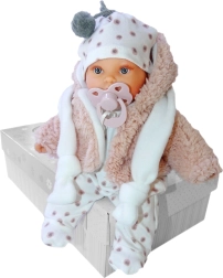 Descubre la magia de una muñeca española hecha a mano, cuyas funciones encantarán a cualquier niño. Esta muñeca reacciona al chupete magnético y emite sonidos realistas de un bebé llorando que se pueden calmar. También puede decir "mamá" y "papá".
