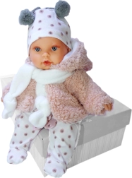 La muñeca tiene un tamaño ideal de 27 cm, perfecto para manos pequeñas y que favorece la motricidad fina. Se entrega en una bonita caja de regalo, lo que la convierte en un regalo ideal para niños a partir de 2 años. El paquete incluye 3 pilas de botón LR44 con instrucciones para su sustitución.