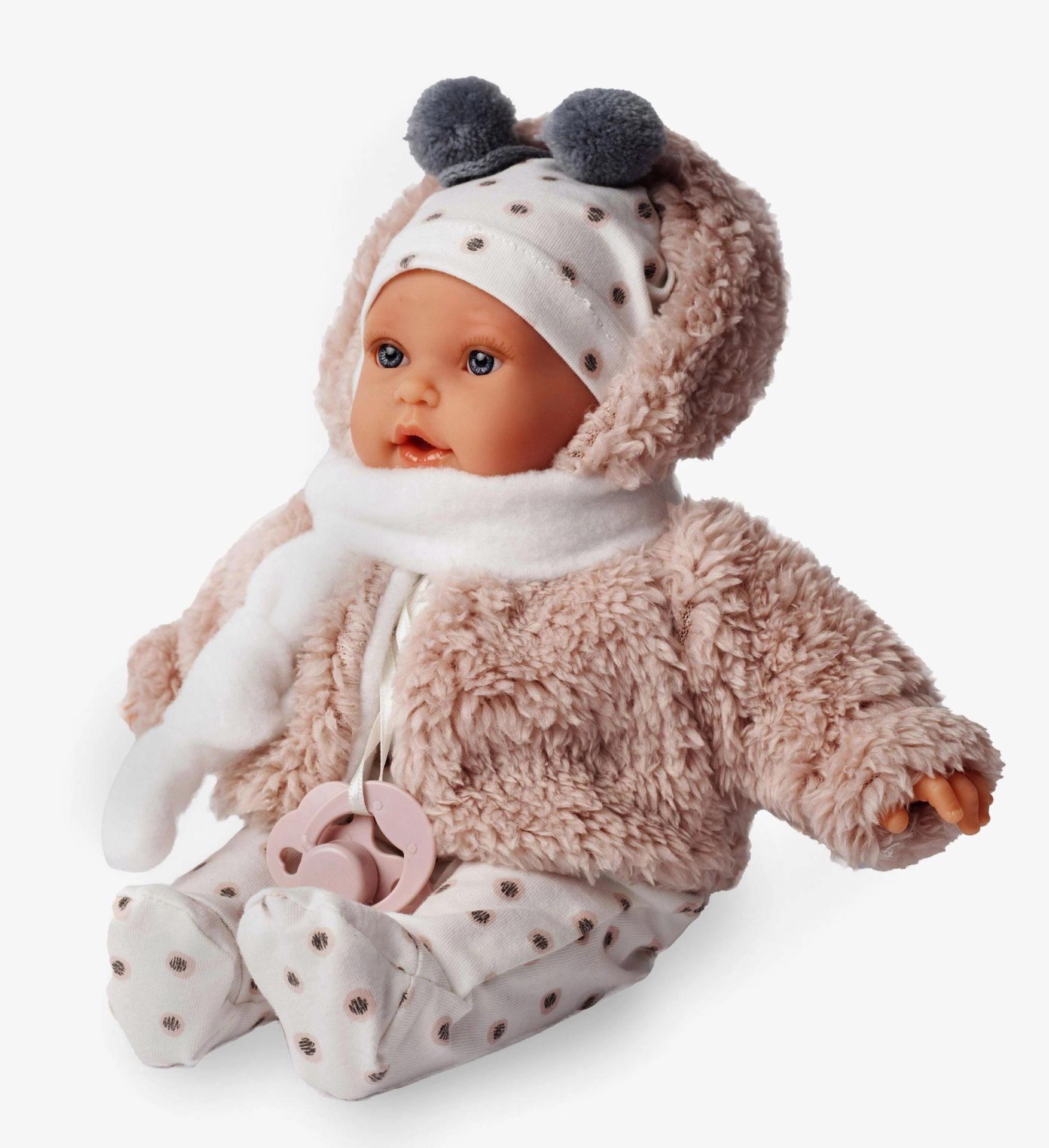 El tamaño de 27 cm es perfecto para manos pequeñas, fomentando el juego de roles y la motricidad fina.