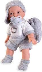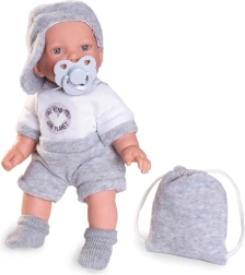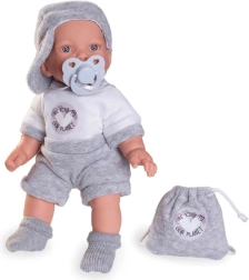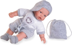Esta muñeca parlante está hecha a mano conforme a altos estándares ecológicos. Al presionar su barriguita, la muñeca dice “mamá”, “papá” y emite un sonido real de bebé riendo.